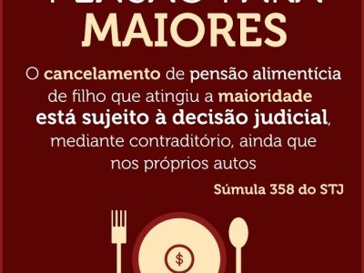 A súmula 358 do STF diz “o cancelamento de pensão alimentícia de filho que atingiu a maioridade está sujeito à decisão judicial,...Leia mais