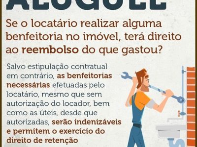É um direito do locatário ser reembolsado em casos de benfeitorias necessárias feitas na residência. Naquelas realizadas a título de embelezamento, não...Leia mais
