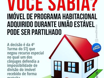 Você sabia? Imóvel de Programa Habitacional adquirido durante união estável pode ser partilhado.